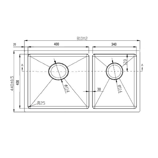 - Góc lượn R15 dễ dàng cọ rửa vệ sinh.
