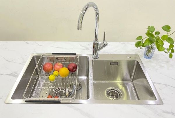 - Hố chậu thiết kế một hố to một hố bé . Giúp người dùng linh hoạt trong việc lựa chọn hố để thao tác rửa tiết kiệm nước và hiệu quả hơn.