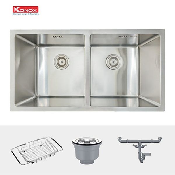 - Chậu rửa bát Konox KN8144DU được làm bằng inox 304 chống rỉ sét. Nó có khả năng thoát nước tốt, chống đọng nước ở đáy.